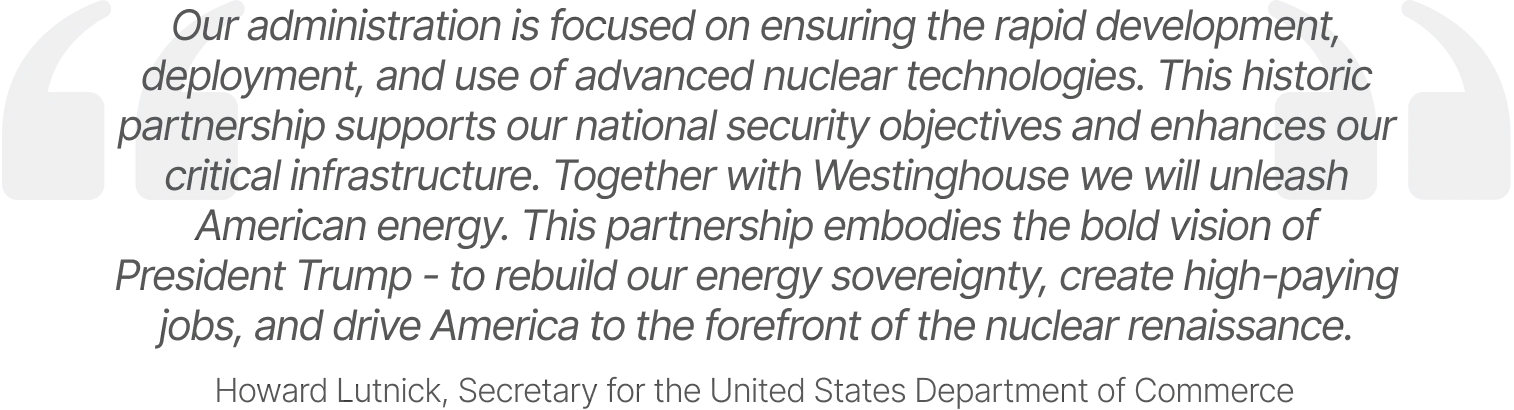 Under the partnership, Westinghouse will deploy its AP1000 reactor, which is the most advanced reactor commercially available and boasts the smallest footprint per MWe in the market. Once constructed, the reactors will generate reliable and secure power for a range of applications, including for data centers that will drive America’s growth in artificial intelligence (AI).