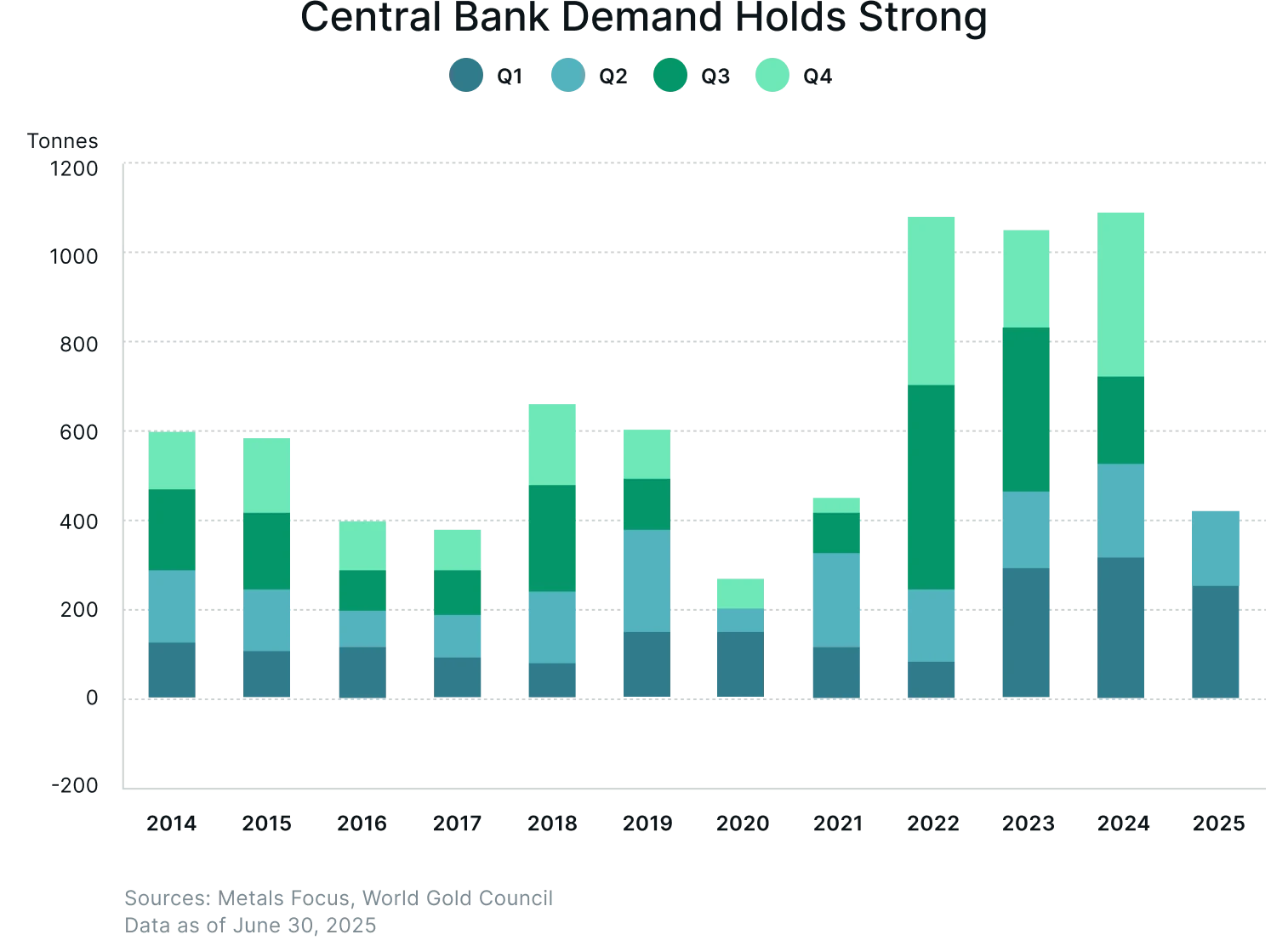 8World Gold Council, Gold Demand Trends Q2 2025: Central Banks, as of July 31, 2025