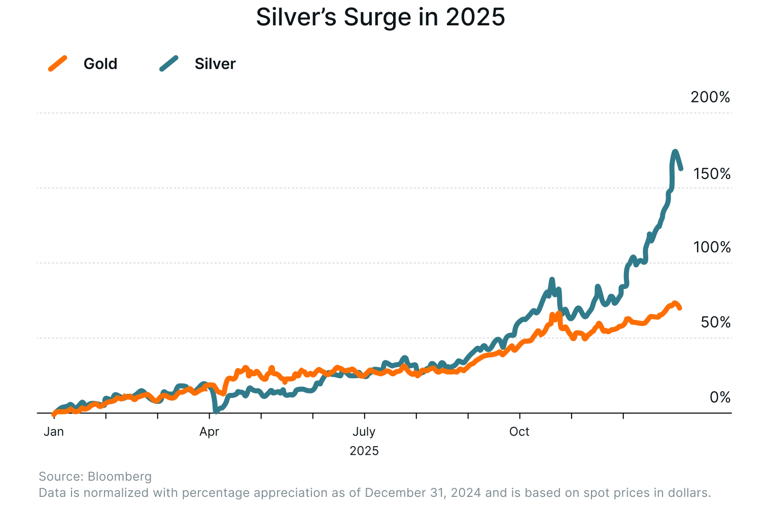 In 2025, the metal surged 150%, beating gold’s 68% gain in a remarkable year for precious metals as investors responded to inflation risks, shifting interest-rate expectations, and rising geopolitical uncertainty.1